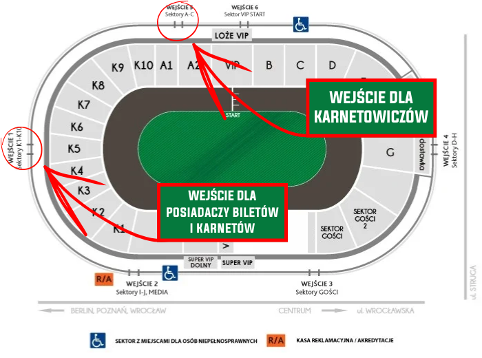 Dla posiadaczy biletów udostępnione zostaną wejścia pod trybuną K przy kasach biletowych.